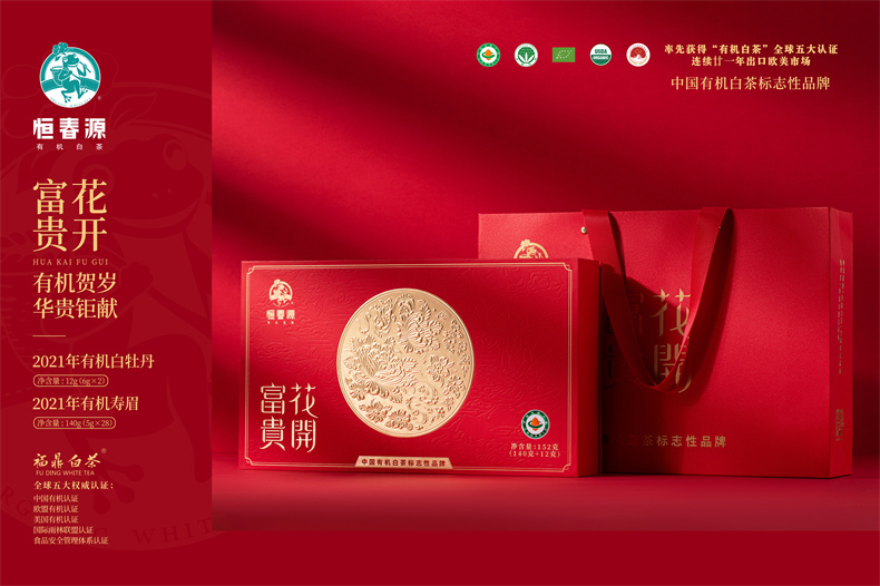 24版花開富貴·有機(jī)白茶 統(tǒng)一零售價(jià):398 元/盒 凈含量:152g(壽眉5g*28+牡丹6g*2) 壽眉原料:2021年一級(jí)有機(jī)壽眉 牡丹原料:2021年一級(jí)有機(jī)牡丹 裝箱量:10盒/件