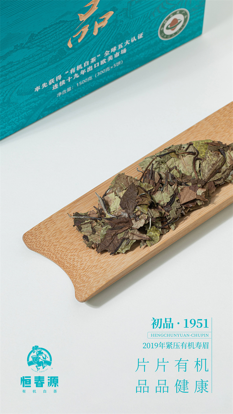 品名:初品.1951 統(tǒng)一零售價(jià):560元/盒 凈含量:300克 原料:2019年有機(jī)一級(jí)壽眉 裝箱量:16盒/件 品名:初品.1951(收藏版) 統(tǒng)一零售價(jià):2300元/盒 凈含量:300克×5餅 原料:2019年有機(jī)一級(jí)壽眉 裝箱量:4盒/件