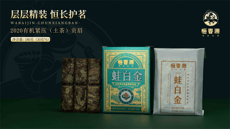 產(chǎn)品系列:蛙白金.純享版 產(chǎn)品名稱:2020年有機(jī)緊壓貢眉 零售價(jià):460元/盒 凈含量:180克(30克*6) 原料:2020年有機(jī)貢眉 裝箱量:20盒/件