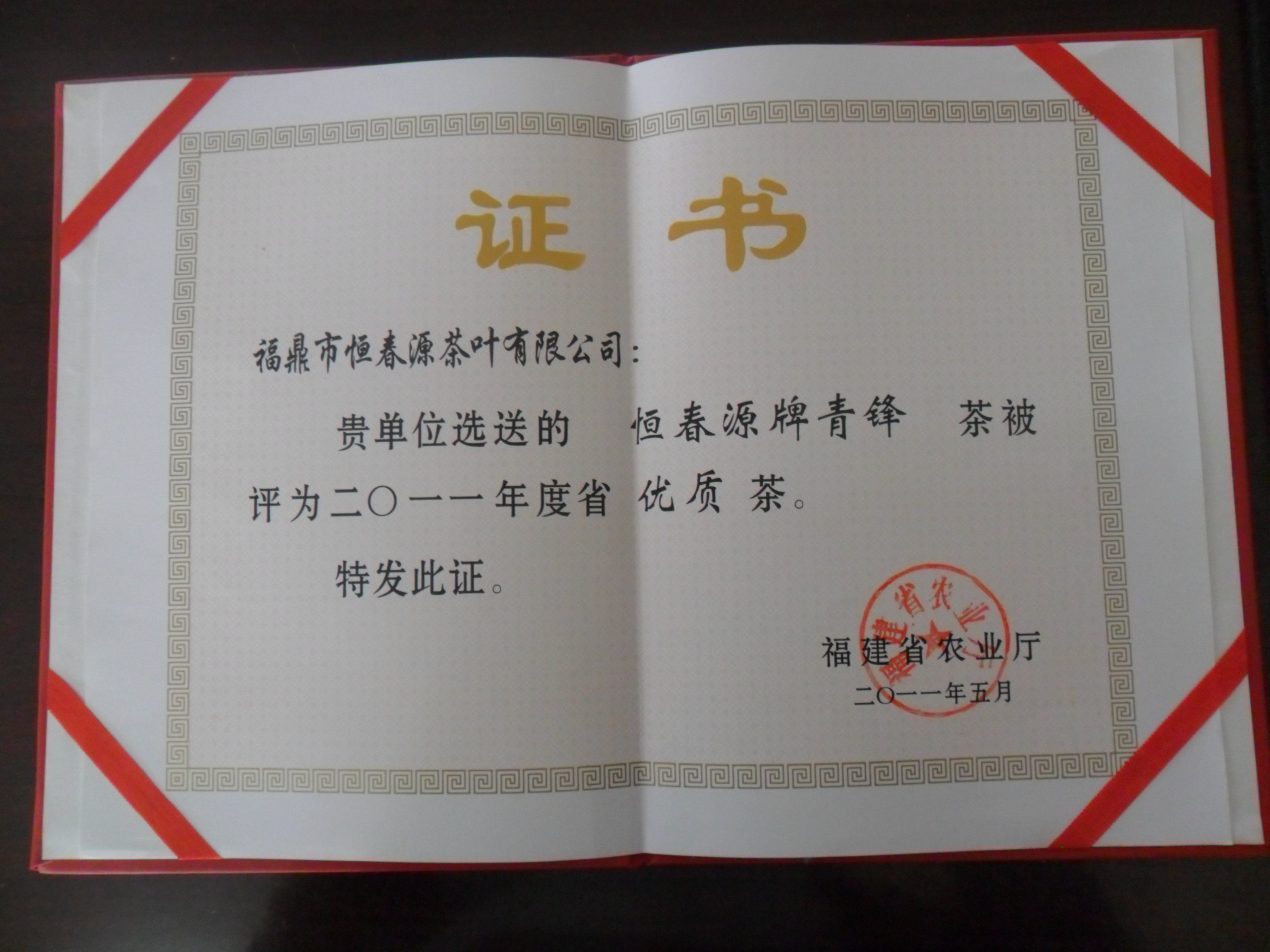 第二屆福鼎白茶斗茶賽優(yōu)質(zhì)獎(jiǎng)