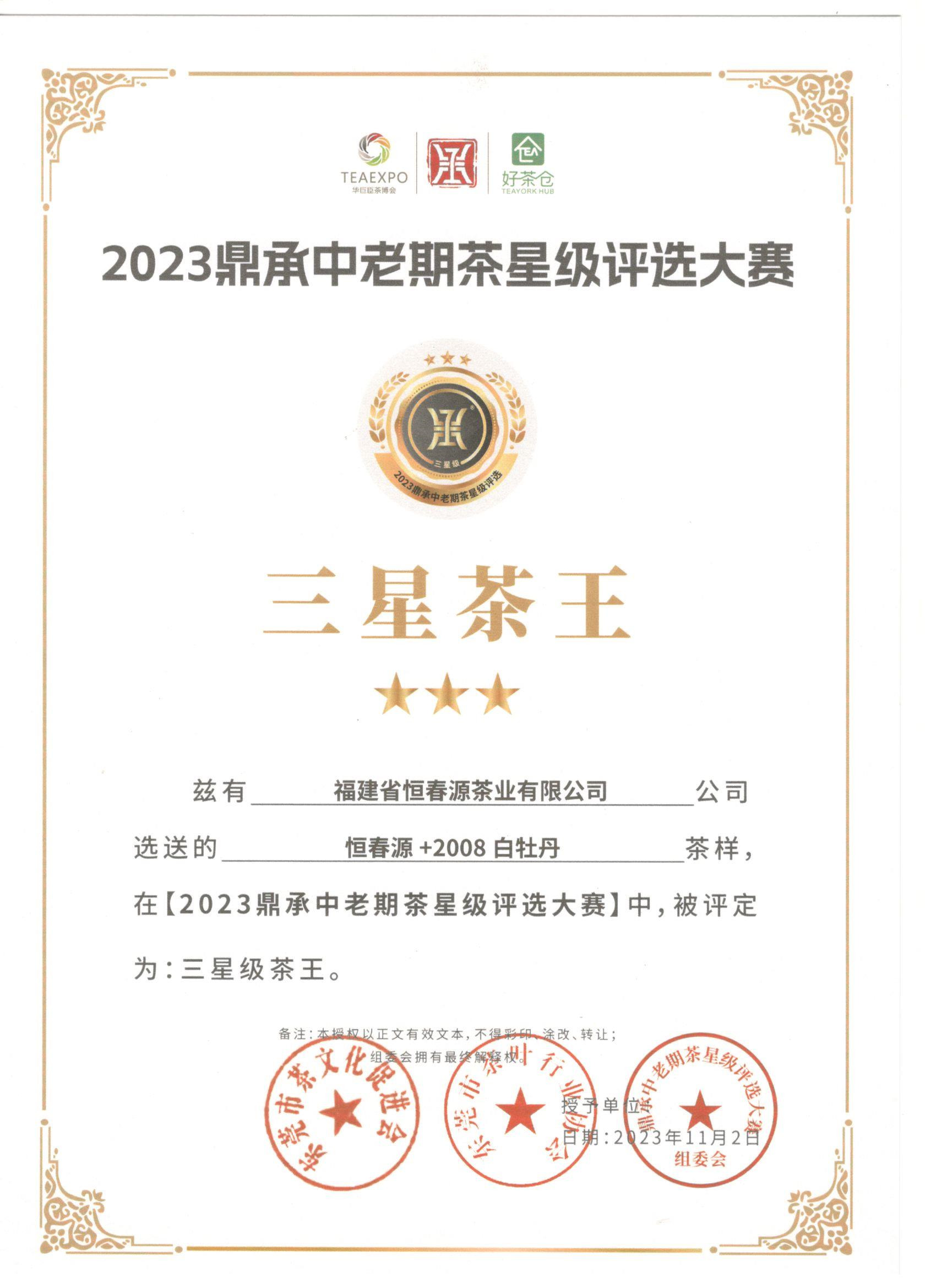 2023鼎承中老期茶星級(jí)評(píng)選大賽三星茶王