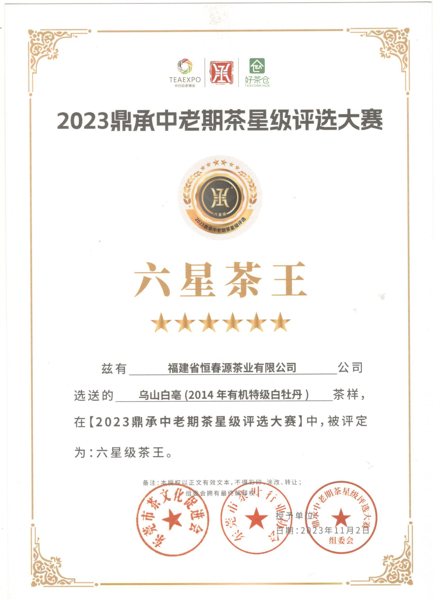 2023鼎承中老期茶星級評選大賽六星茶王