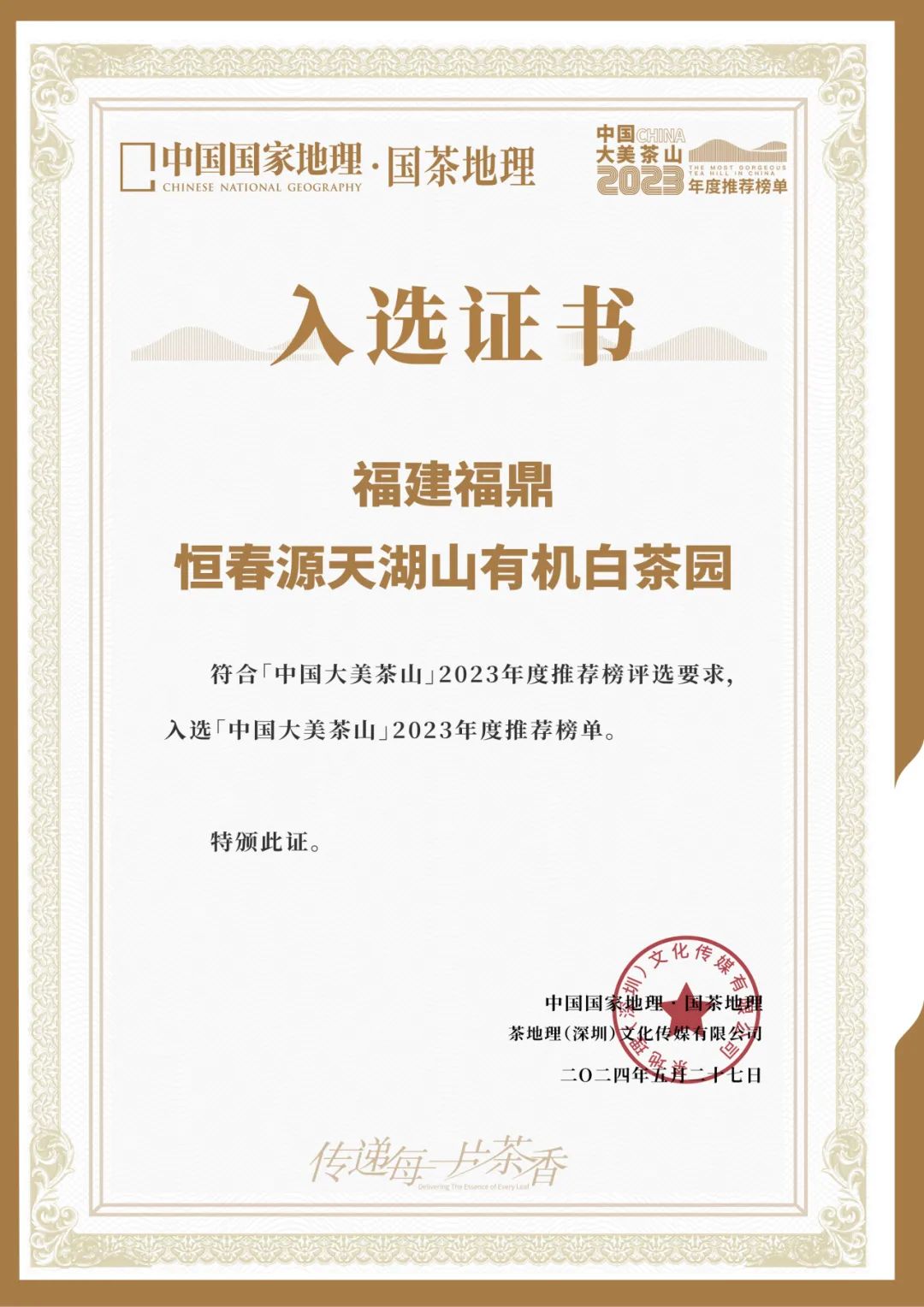 本次恒春源天湖山有機(jī)白茶園榮幸入選,不僅彰顯了公司的品牌實(shí)力,更是對恒春源茶業(yè)長期以來堅(jiān)持綠色發(fā)展、品質(zhì)至上理念的高度認(rèn)可與肯定。