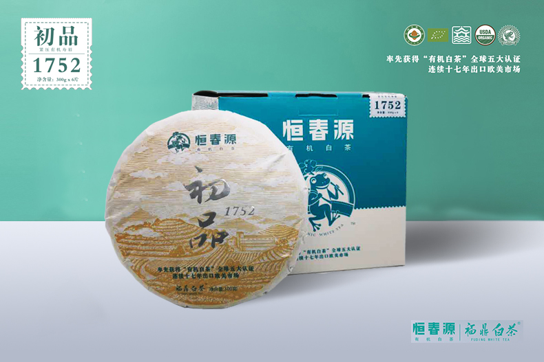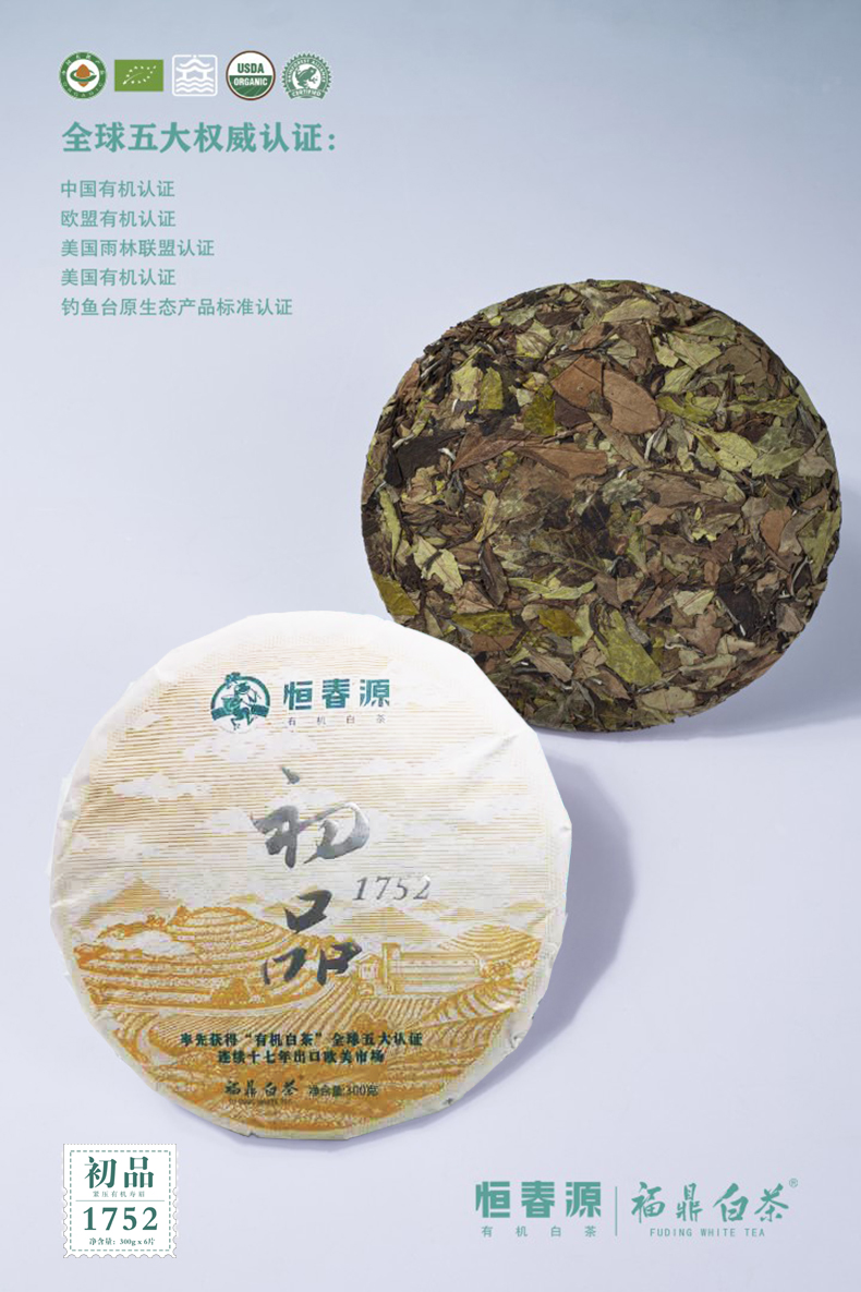 產(chǎn)品名稱:初品1752(緊壓白茶) 全國(guó)統(tǒng)一零售價(jià):920元/餅 配 料:2017年有機(jī)一級(jí)壽眉 凈 含 量:300g 生產(chǎn)日期:見(jiàn)噴碼 保 質(zhì) 期:適宜長(zhǎng)期保存,十五年之內(nèi)飲用最佳 貯存方法:密封、避光、防潮、防異味