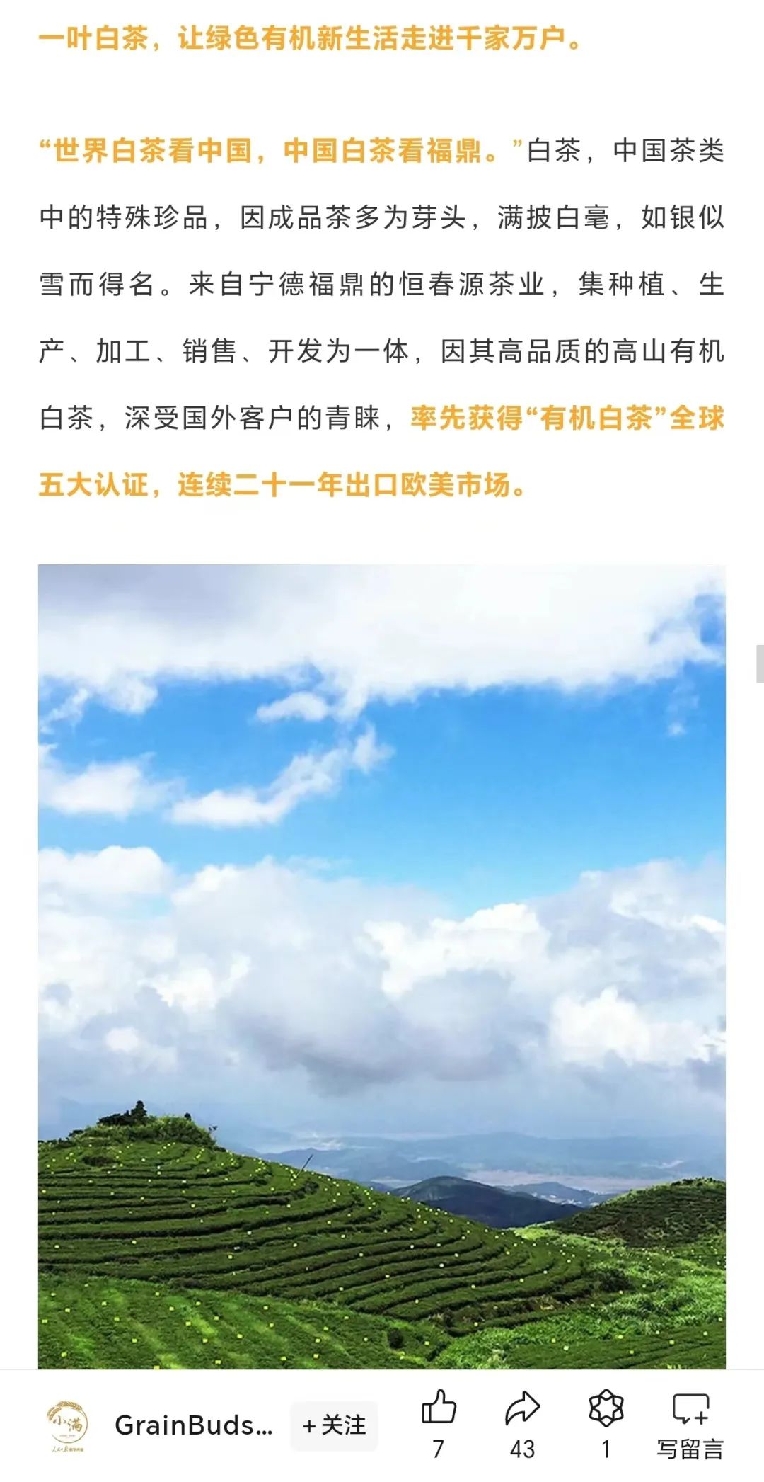 恒春源作為本次參展的企業(yè)之一,是本次福建館內(nèi)“福鼎白茶”品牌代表性企業(yè)。恒春源茶業(yè)創(chuàng)立于2004年,始于1958年國有茶廠,一直致力于推廣有機健康生活。擁有“有機白茶”全球五大認證,連續(xù)二十一年出口歐美市場。