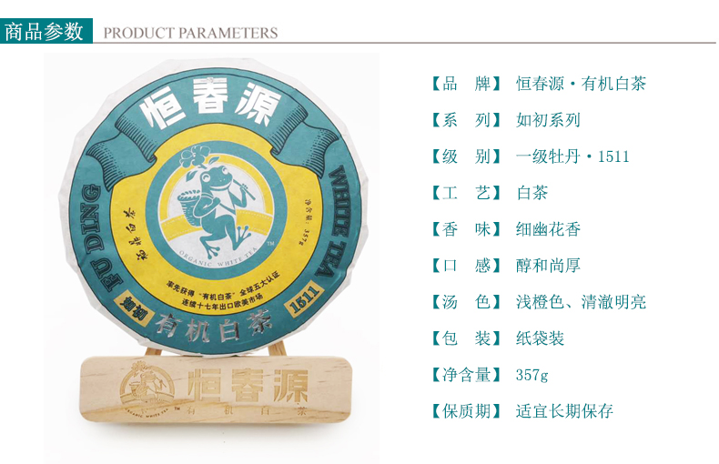 產(chǎn)品名稱:如初1511(緊壓白茶) 全國統(tǒng)一零售價(jià):3880元/餅 配 料:2015年一級(jí)白牡丹 凈 含 量:357g 生產(chǎn)日期:見噴碼 保 質(zhì) 期:適宜長期保存,十五年之內(nèi)飲用最佳 貯存方法:密封、避光、防潮、防異味