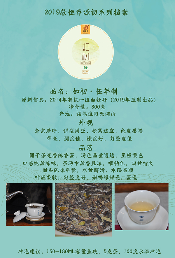 出品時(shí)間:2019年3月1日恒春源公司選用來(lái)自2014年4月7日所出品的天湖山有機(jī)一級(jí)白牡丹原料精心制作而成。